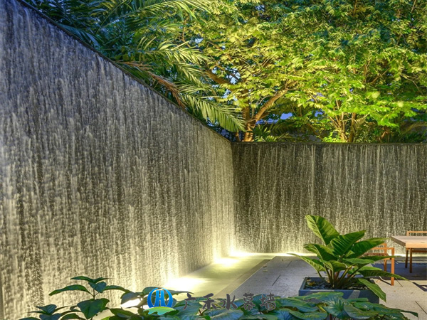 1.最简单的,水幕可以把普通的墙体装饰成景观墙来观赏,达到最简单的景观效果,使简单的墙面不再简单、单调;2.水幕墙还可以作为元素处理一些空间设计上比较难以处理的位置,例如空间角落水景、天井水幕、楼梯下水景···